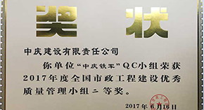 中慶建設(shè)QC成果喜獲全國(guó)市政工程優(yōu)秀QC小組二等獎(jiǎng)
